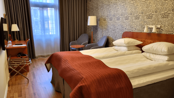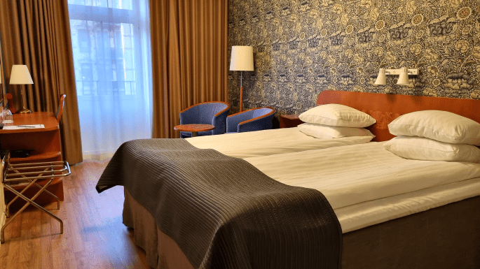 Rum (13-16 m²) som är möblerade med två bekväma sängar (2×90 cm), som står separerade vid varsin sida av rummet. Perfekt för kollegor eller kompisar.
