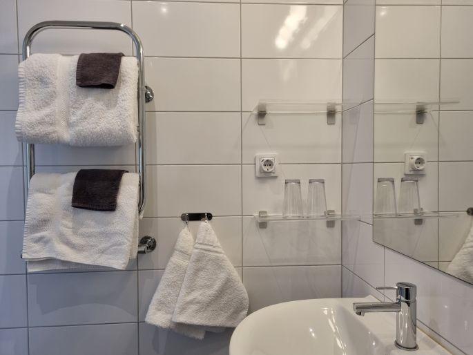 - Hotellet består av entréplan samt fem våningar med gästrum. Det finns två mindre hissar samt en ramp vid entrén för exempelvis barnvagn. Det finns trösklar i huset. Hotellet är inte tillgänglighetsanpassat men i mån av tillgång kan vi ordna ett rum med bredare badrumsdörr och armstöd vid toalettstolen samt duschpall i badrummet. Vid behov kan ni även be om att få låna en halkskyddsmatta till badrummet eller en förhöjning av toalettstolen (i mån av tillgång). Dock finns det trösklar i alla våra rum. Alla våningar är helt dunfria. Allergistädning kan ordnas vid förfrågan på förhand.
